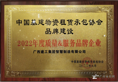 廣西建工集團(tuán)智慧制造有限公司榮獲“2022年度質(zhì)量服務(wù)品牌企業(yè)”,公司董事長(zhǎng)、黨總支書記李日紅榮獲“2022 年全國基建物資租賃承包行業(yè)杰出創(chuàng)新人才”稱號(hào)。